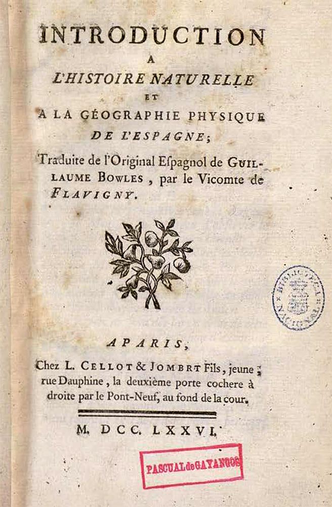 Pero volvamos a la historia. Un francés, el Vizconde de Flavigny traduce, a finales del siglo XVIII (1.776), un libro, Introducción a la Historia Natural y Geografía Física de España. La traducción del original en español de "Guillaume Bowles".