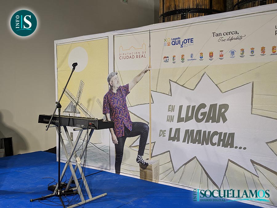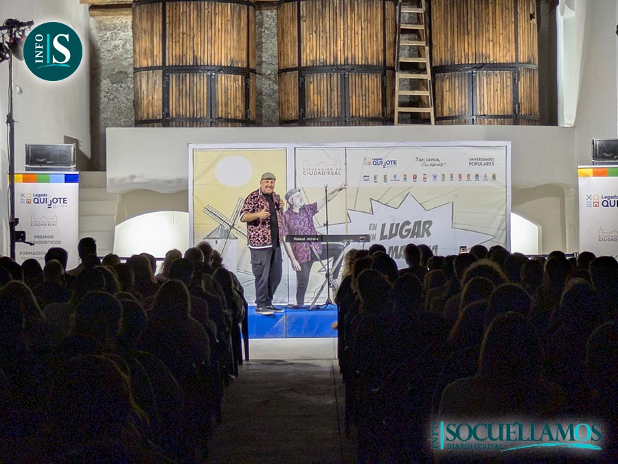 Agustín Durán, cargado de sátira manchega —no en vano “Legado Quijote” es la inspiración de la gira—, ha hecho disfrutar al público que llenaba la nave de la Casa de Mendoza, con referencias cervantinas y numerosos guiños a la identidad local, interaccionando con el público, ha hablado de motes, cultura de gañanes y múltiples anécdotas que han sacado una carcajada tras otra al público.