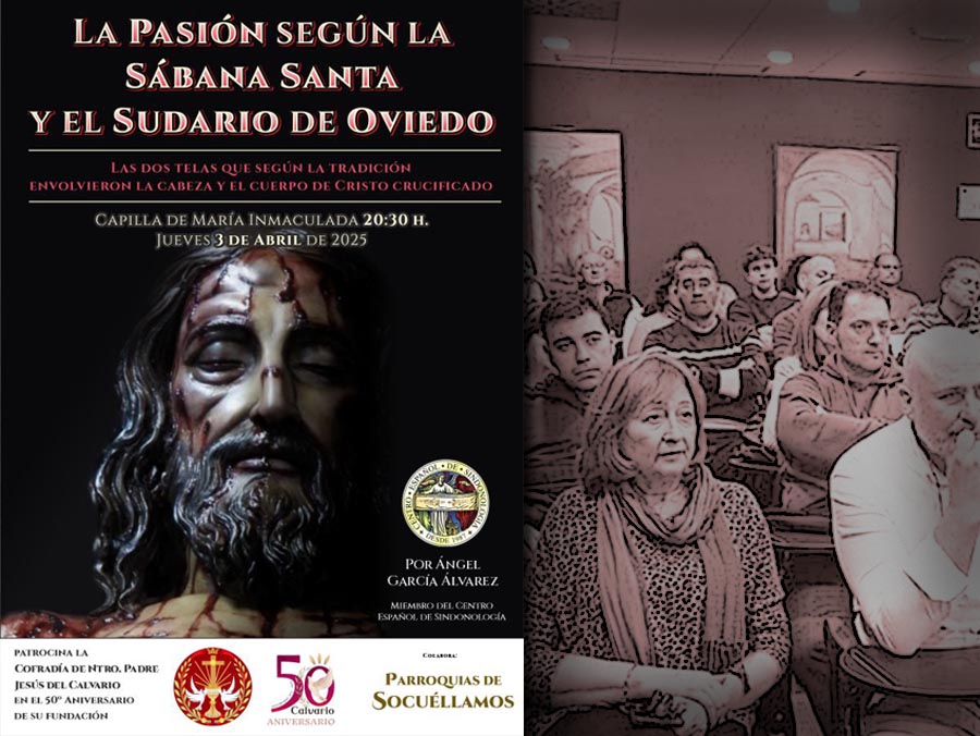 En el marco de los actos programados con motivo del 50º Aniversario de la Cofradía de Jesús del Calvario el próximo jueves 3 de abril en la Capilla de María Inmaculada a las 20:30 h. tendrá lugar la charla: 'La Pasión según la Sábana Santa y el Sudario de Oviedo' a cargo de Ángel García Álvarez, aunque arquitecto de profesión, se dedica también a dar charlas divulgativas como miembro del Centro Español de Sindonología, asociación dedicada a la investigación y divulgación de las reliquias relacionadas con Jesucristo que puedan ser objeto de estudio científico. Como curiosidad Ángel fue el arquitecto que hizo la ampliación del Centro de Salud Cándido Pozuelo.