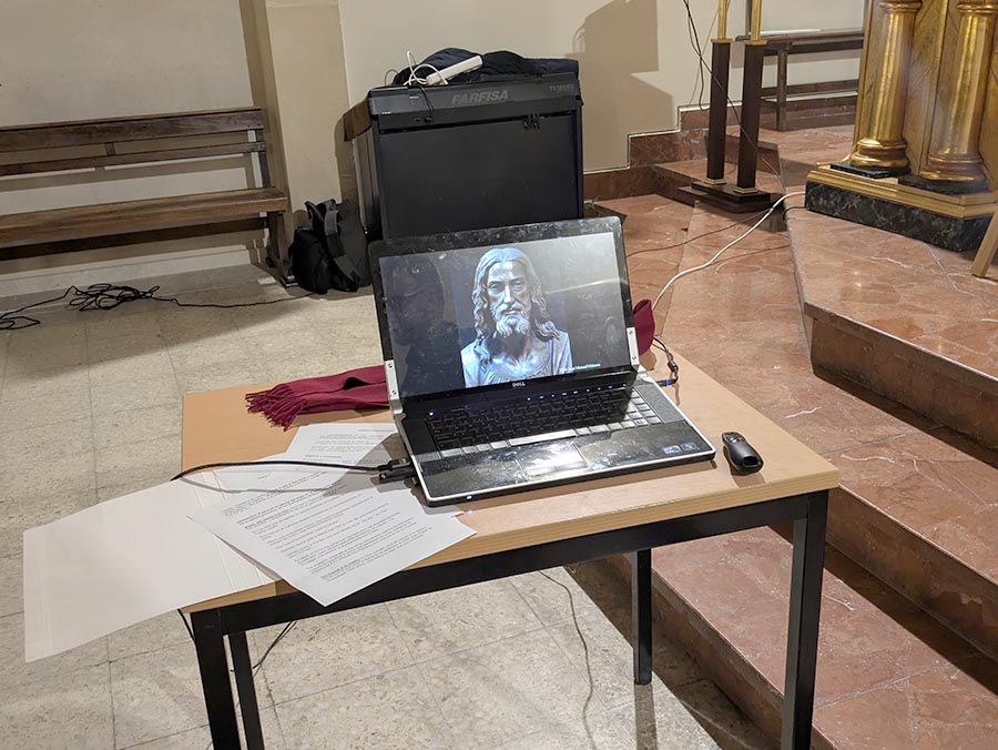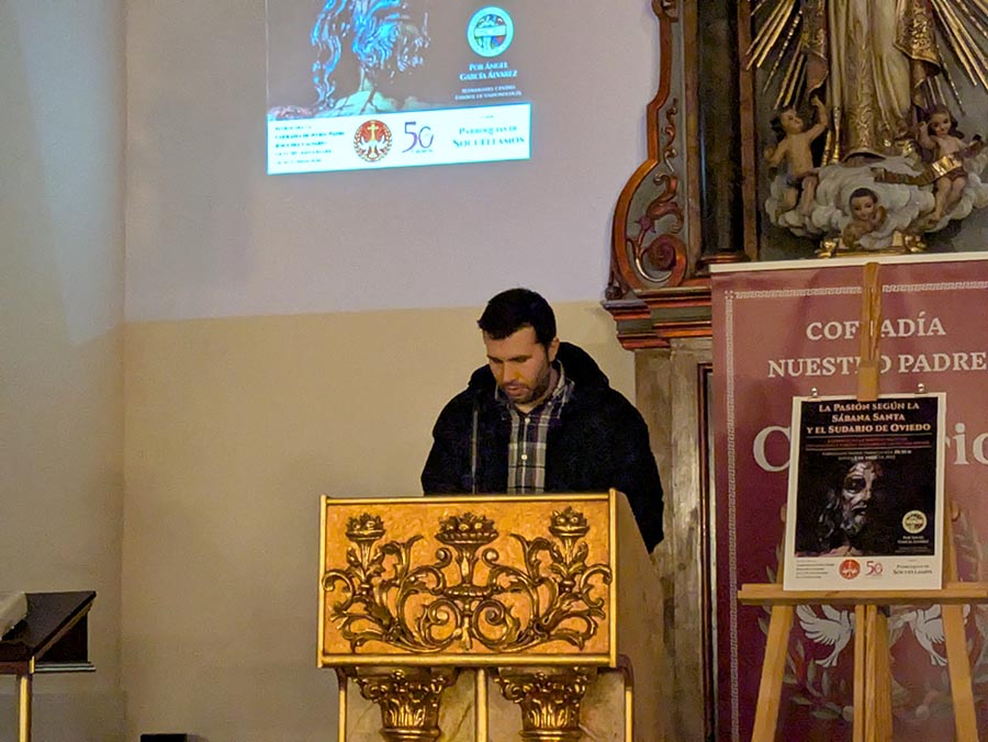 El jueves al finalizar la Misa ha tenido lugar una apasionante charla a cargo del miembro del CES Centro Español de Sindonología, Ángel García Álvarez titulada: 'La Pasión según la Sábana Santa y el Sudario de Oviedo'