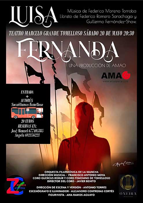 La soprano Ángela Cano Alcolea -que continúa siendo requerida por el Coro de Radio Televisión Española como voz de refuerzo – interpretará a la protagonista, Luisa Fernanda. Por su parte, José Manuel Padilla Trillo se meterá en la piel de Luis Nogales.