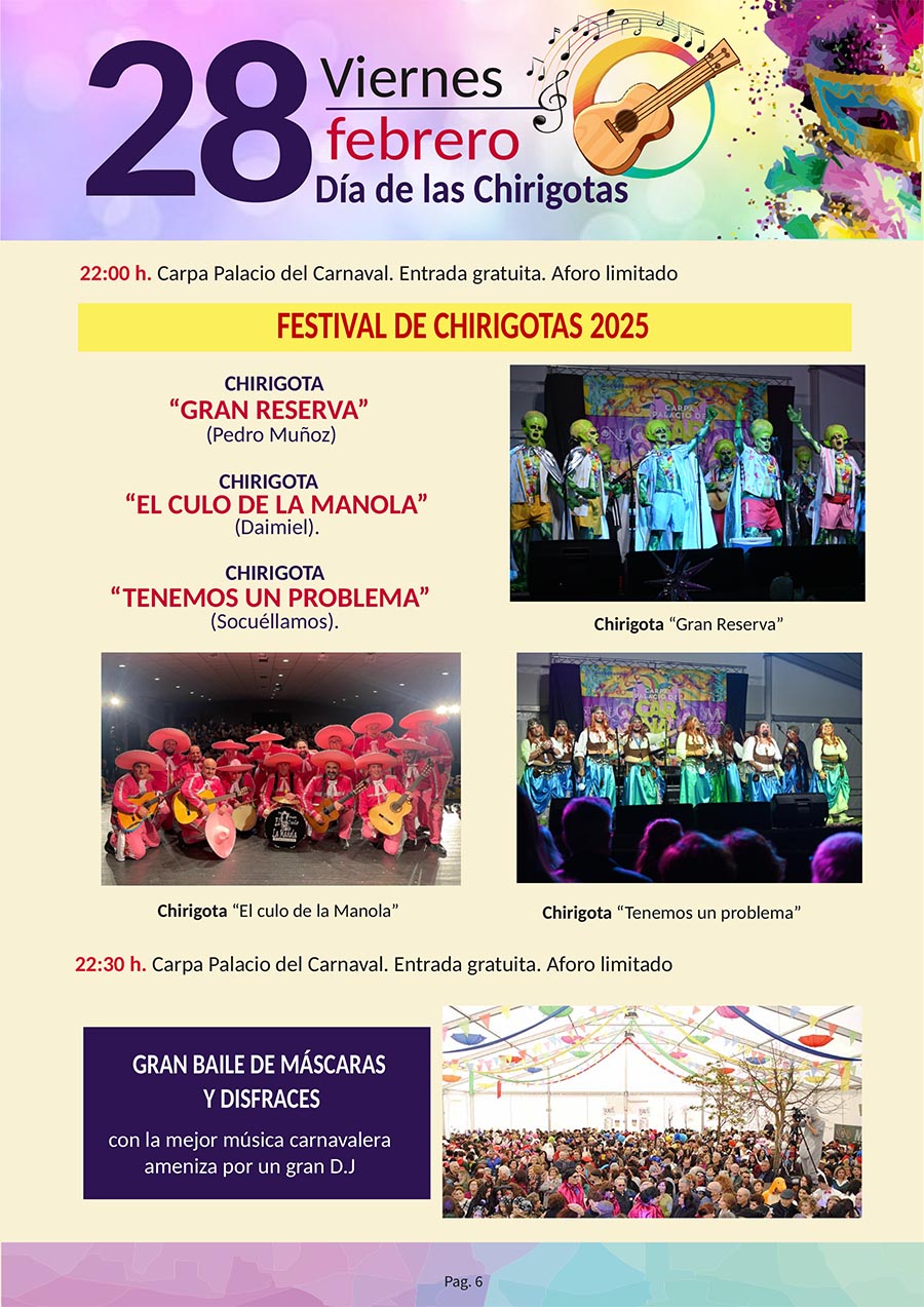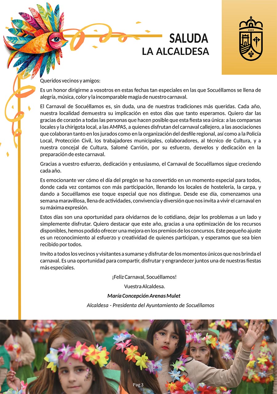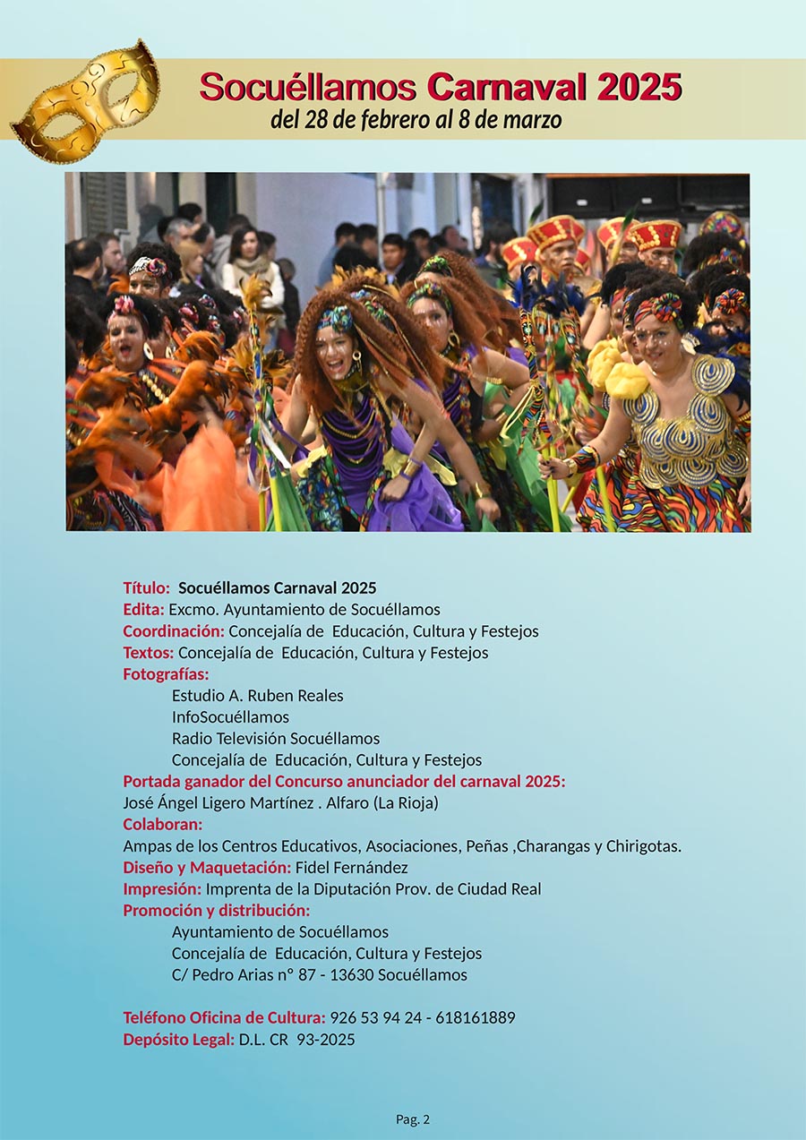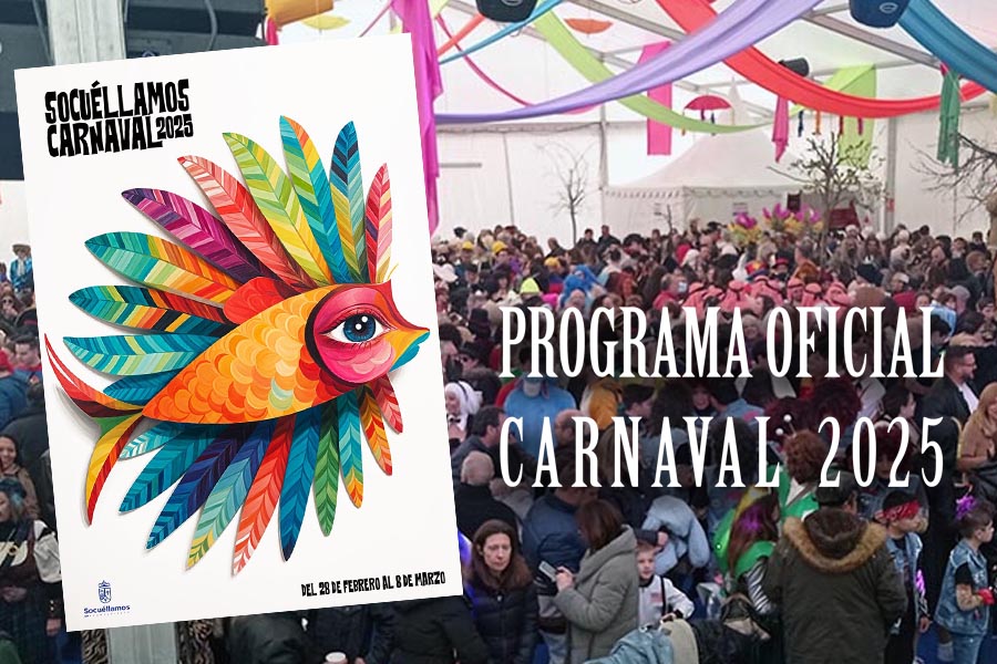 CULTURA Aquí puede consultar el Programa Oficial del Carnaval 2025 febrero 21, 2025 FacebookTwitterWhatsAppEmailTelegram - Publicidad - - Publicidad - TagsAyuntamiento Socuéllamosconcejalia de culturaPROGRAMA CARNAVAL 2025 MÁS NOTICIAS Enternecedora y emocionante Misa del Gallo Santoral del 22 de diciembre. Clotilde, Francisca Javiera, Hungero, Isquirión y Queremón. Santoral del 24 de diciembre. Gregorio, Delfín, Irmina o Irma, Metrobio y Tarsila. Poesía de José Antonio Salamanca El domingo 28 el Heraldo Real recogerá las cartas para los Reyes Magos de Oriente CULTURA Aquí puede consultar el Programa Oficial del Carnaval 2025 febrero 21, 2025 FacebookTwitterWhatsAppEmailTelegram - Publicidad - - Publicidad - TagsAyuntamiento Socuéllamosconcejalia de culturaPROGRAMA CARNAVAL 2025 MÁS NOTICIAS El domingo 28 el Heraldo Real recogerá las cartas para los Reyes Magos de Oriente Santoral del 22 de diciembre. Clotilde, Francisca Javiera, Hungero, Isquirión y Queremón. La Luz de la Paz de Belén llega a Socuéllamos Los Reyes Magos. El incienso y la mirra Santoral del 23 de diciembre. Antonio, Juan, Ivón, María Margarita, Sérvulo y Thorlaco.