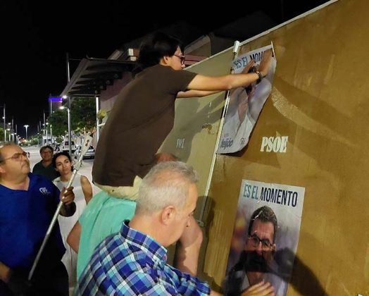 Anoche los tres partidos políticos con representación en Socuéllamos realizaron ese acto simbólico de la pegada de carteles. Partido Popular, Partido Socialista y Vox comenzaron en el bulevar de la calle Don Javier y continuaron por los distintos puntos permitidos para la publicidad electoral.