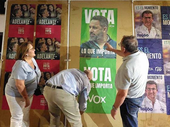 Una vez fijados los carteles con las imágenes de Pedro Sánchez, Alberto Núñez Feijóo y Santiago Abascal, las dirigentes del Partido Popular y Partido Socialista realizaron declaraciones a la prensa pidiendo el voto para sus formaciones.