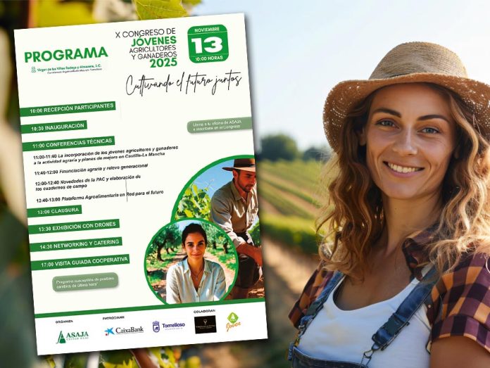Ciudad Real, 12 de noviembre de 2025. ASAJA celebra este jueves, 13 de noviembre, en las instalaciones de Virgen de las Viñas Bodega y Almazara S.C. de Tomelloso, su X Congreso Provincial de Jóvenes Agricultores y Ganaderos, una cita que se consolida como el principal punto de encuentro de las nuevas generaciones del campo ciudadrealeño. Bajo el lema “Cultivando el futuro juntos”, el Congreso abordará los retos de la incorporación de jóvenes al sector, la financiación agraria, las novedades de la PAC y las oportunidades de futuro que ofrecen nuevas tecnologías al campo.