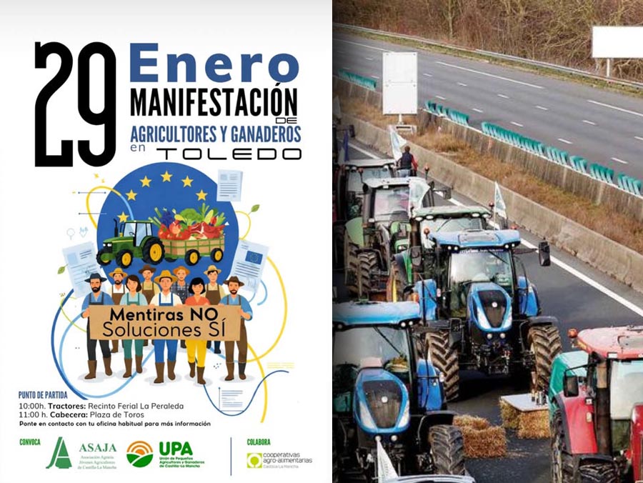 Agricultores y ganaderos han convocado una manifestación el próximo 29 de enero en la ciudad de Toledo para denunciar la situación que atraviesa el sector y reclamar soluciones reales a sus problemas.