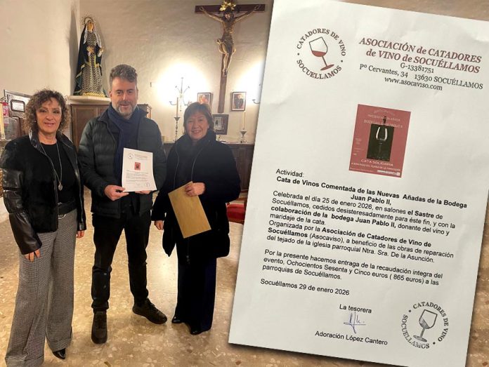 La Asociación de Catadores de Vino de Socuéllamos (Asocaviso) ha hecho entrega de la recaudación íntegra obtenida en la reciente Cata de Vinos Comentada de las Nuevas Añadas de la Bodega Juan Pablo II, celebrada con fines solidarios en la localidad.