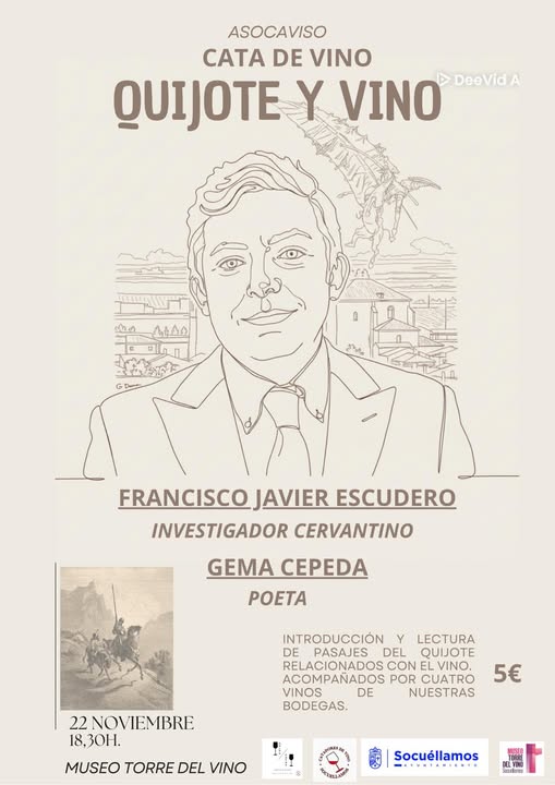 El próximo 22 de noviembre, a las 18:30 horas, el Museo Torre del Vino de Socuéllamos acogerá una actividad cultural que combinará literatura, historia y enología: la cata de vino “Quijote y Vino”, organizada por ASOCAVISO.