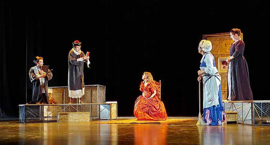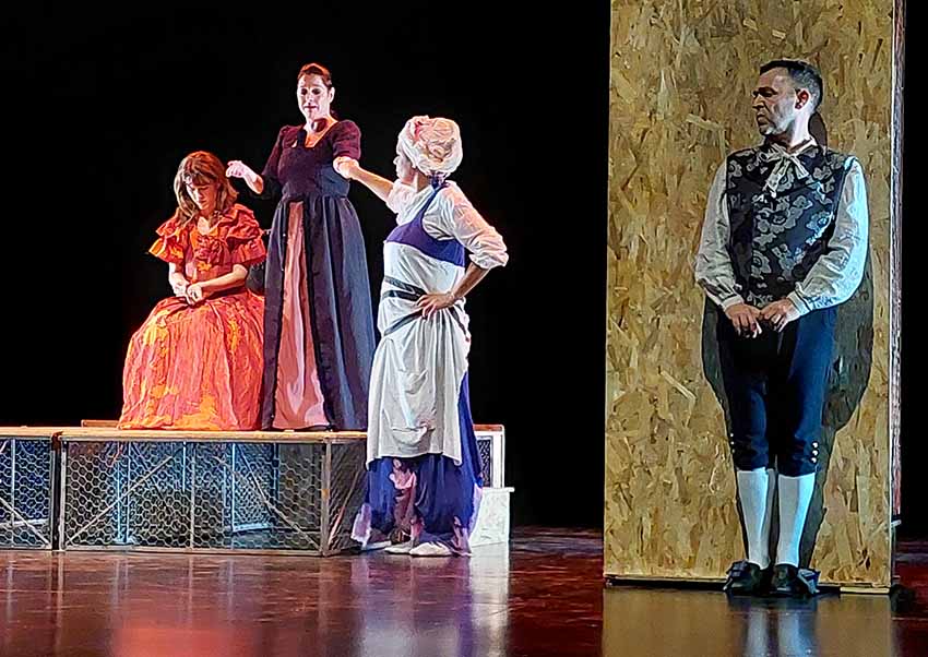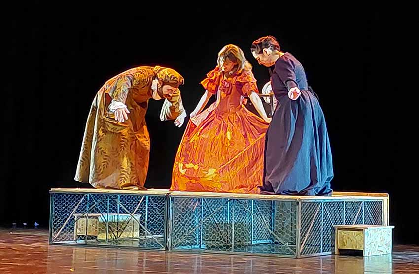 Bajo la estimable dirección de Ana Vélez; María Crespo se convirtió en Lucrecia la doblemente malcasada por dinero; la madre que mercadea con su hija fue Alicia Rodríguez; al eterno enamorado de Lucrecia don Juan lo interpretó Rubén Riera; José Carlos Fernández encarnó al amanerado pretendiente Lisandro y también a los dos contrahechos maridos de Lucrecia; Carlos Arroyo se convirtió en el enamorado criado de Lisandro; Nerea Moreno fue la descarada ama de Lucrecia; y al criado de don Juan, Hernando, lo interpretó David Fernández “Fabu”.