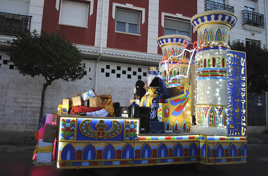 Los Reyes fueron en carrozas alquiladas de gran belleza. Melchor iba entre torres y símbolos egipcios; Gaspar iba en un colorido barco; y Baltasar iba rodeado de animales como cebras, una jirafa y un elefante.