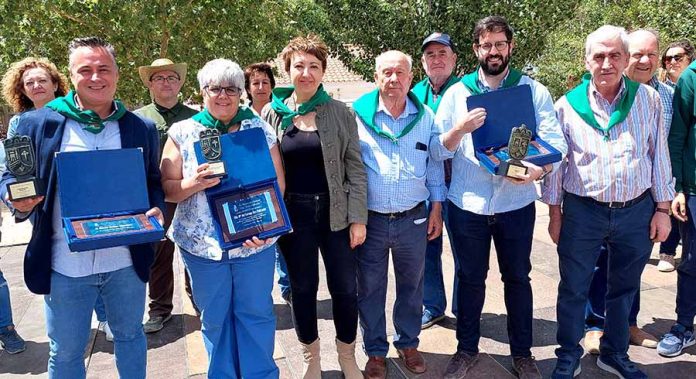 El presidente de la Asociación, Tomás López les impuso el pañuelo verde y les entregó una placa, y la alcaldesa, Elena García, les entregó un trofeo conmemorativo.