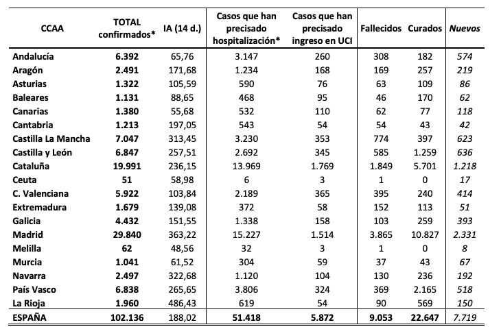 - 3.230 personas permanecen hospitalizadas, 353 están en camas de críticos, 393 personas han obtenido el alta y 774 personas han fallecido por coronavirus.