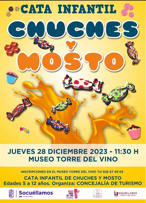 El jueves 28 se celebrará una cata infantil (5 a 12 años) con chuches y mosto. Será a las once y media de la mañana. Ese mismo día a las siete de la tarde la cata será de dulces navideños y vino.