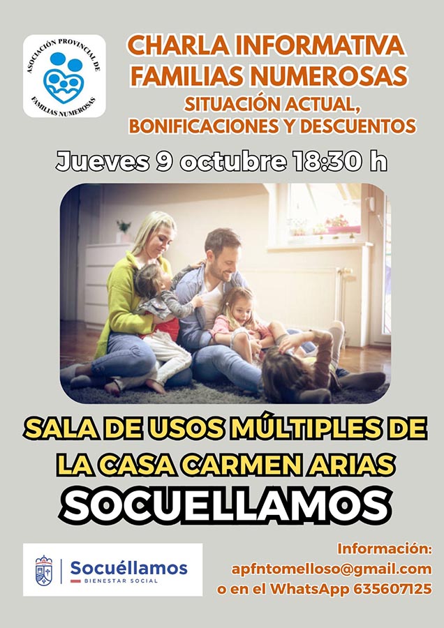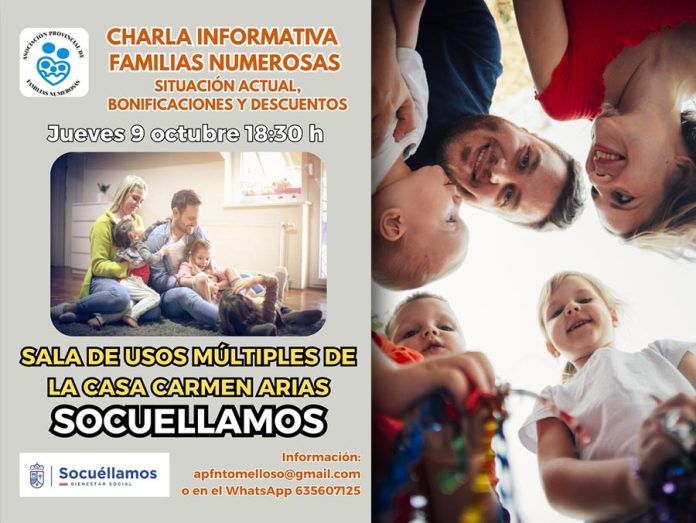 Esta iniciativa cuenta con la colaboración de la Concejalía de Bienestar Social del Ayuntamiento de Socuéllamos y pretende ofrecer una visión clara y actualizada de las ventajas y derechos que tienen reconocidas las familias numerosas, además de resolver posibles dudas de los asistentes.