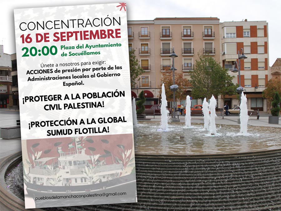 Colectivos de apoyo a la causa de Palestina convocan una concentración el próximo martes, 16 de septiembre a las 20:00 h en la Plaza de la Constitución de Socuéllamos.