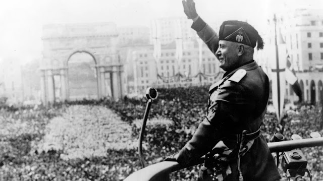 Para entonces, Mussolini ya había adoptado otro artefacto de la simbología romana antigua: "el fascis", un haz de palos con una hoja similar a un hacha en la punta, que representaba la fuerza en la unidad. De ahí proviene la palabra "fascismo".
