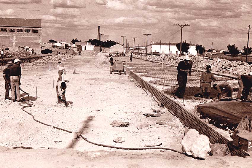 Cuando empezaron las obras de la nueva bodega los Hermanos Reales hicimos centenares de fotos en las diversas fases de construcción, como la que hoy presentamos, que corresponde a los inicios de la primera nave de depósitos, junto a la vía del tren.
