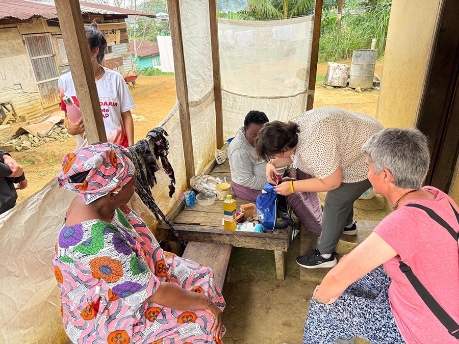 Más tarde, Pilar se ha marchado a llevar comida y medicinas a familias sin recursos, prácticamente abandonadas, que viven en habitaciones construidas con cuatro maderas. Ha sido un día en el que ha podido adentrarse profundamente en la realidad de Guinea.
