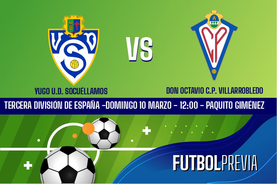 Derbi comarcal el que se disputa este domingo ( 12.00 horas ) en el Paquito Giménez y que enfrenta a dos equipos que luchan por terminar la liga en puestos de Play Offs de ascenso a Segunda División RFEF como son el Yugo U. D. Socuéllamos y el Don Octavio C. P. Villarrobledo.