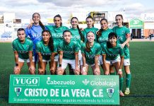 El primer gol para el Atlético Pedro Muñoz lo ha anotado en propia puerta Santi Cano, era el minuto 19. Tres minutos más tarde ampliaba distancias el conjunto local con gol de Roberto López.