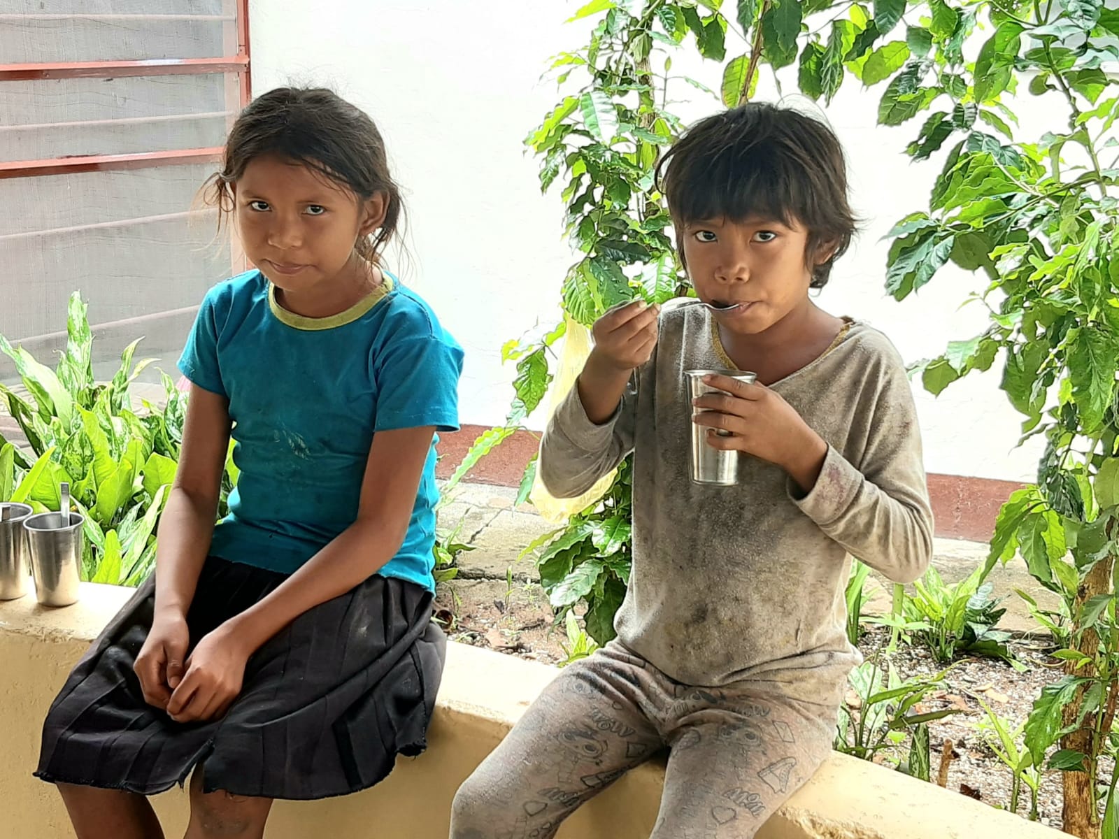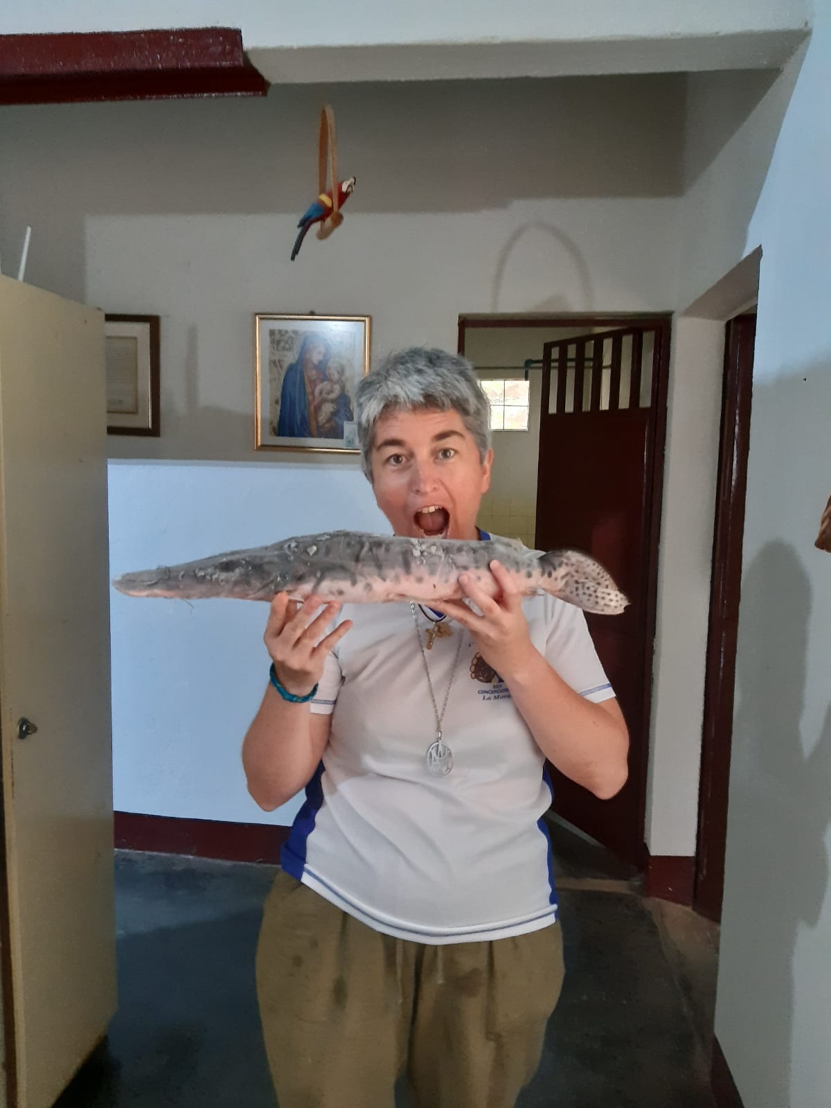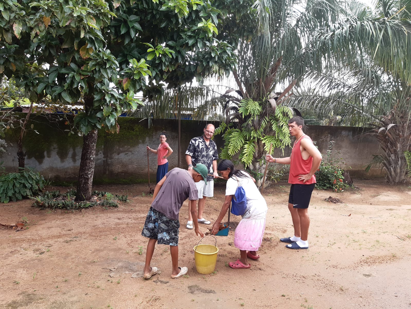 Mientras limpiábamos, ha venido una familia de Chaparralito, una de las comunidades indígenas, para pedir su yucuta del sábado. Mientras esperaban a que la preparásemos, han hecho también su aportación a la limpieza del patio. Acá en la casa es muy frecuente que vengan personas necesitadas pidiendo comida, o agua, o medicinas, o hasta conexión a internet para poder hacer alguna llamada. Alguna vez, también nos traen algo, como el señor Andrés, anoche, que nos trajo unas cachapas deliciosas.