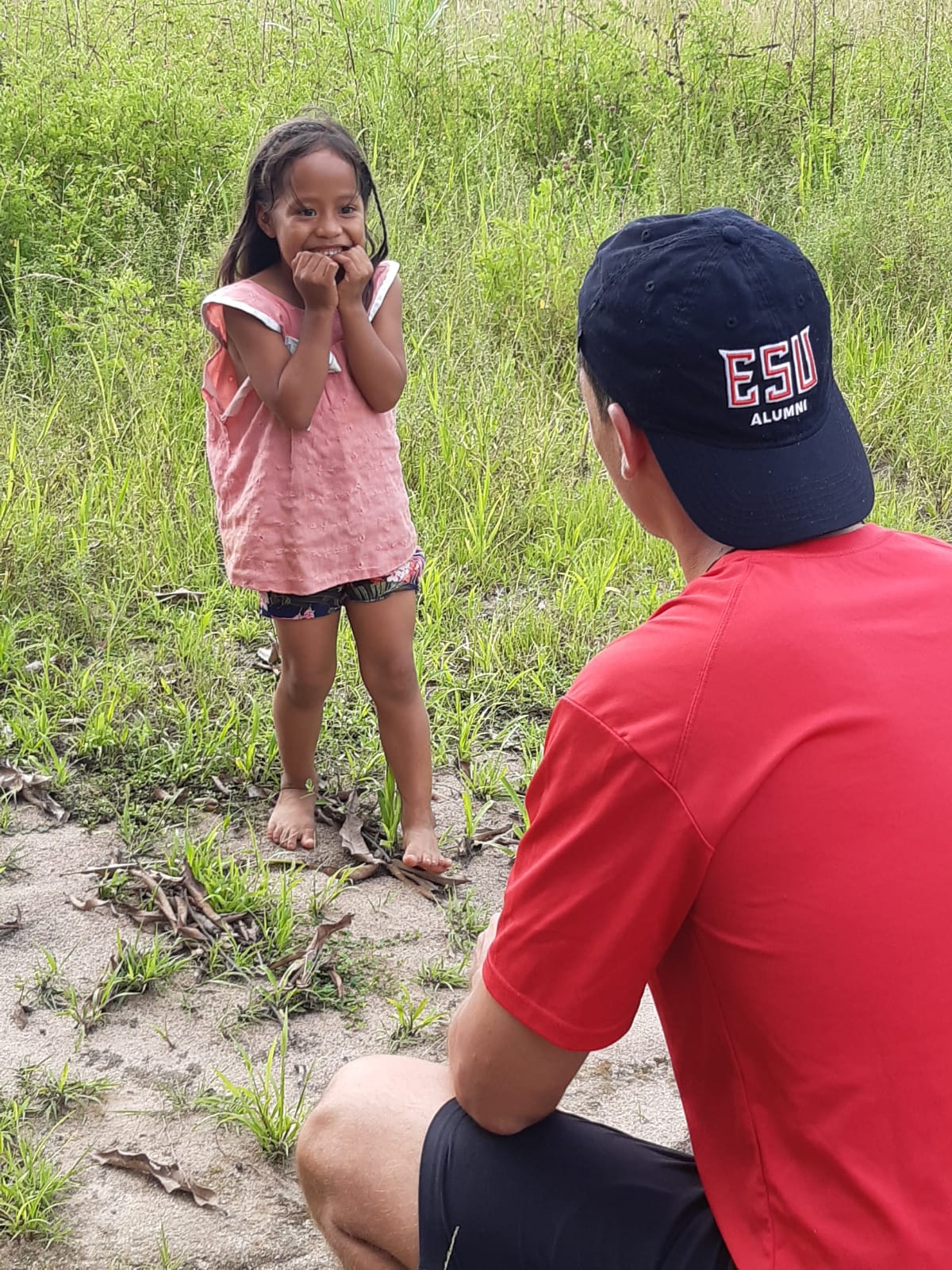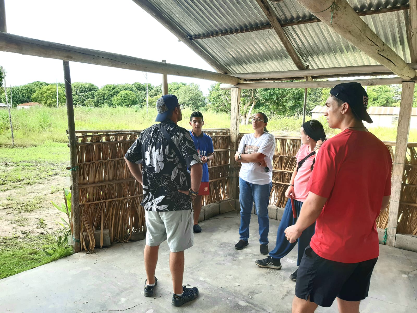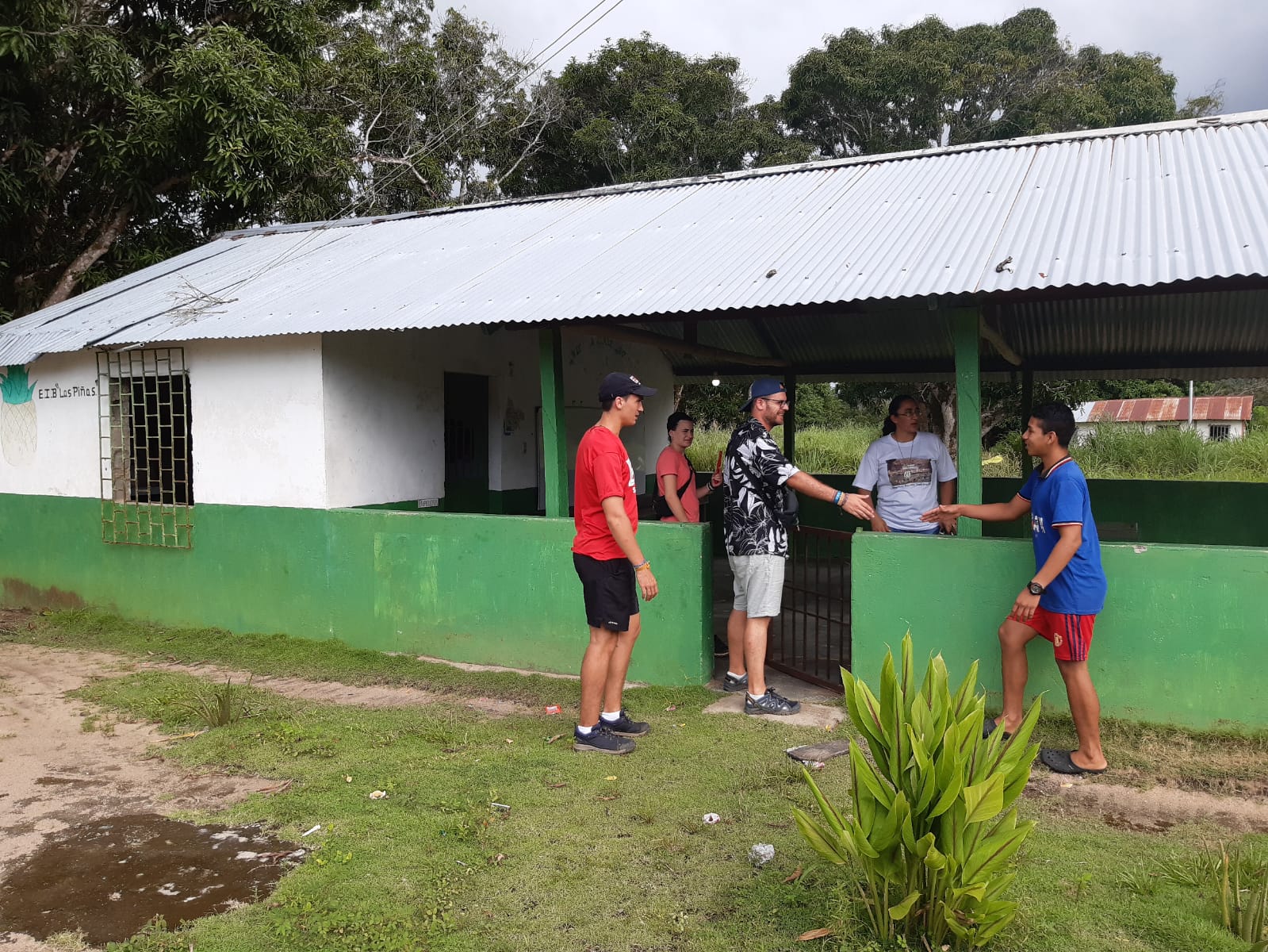 Tras la comida y un poquito de descanso, nos hemos ido a conocer la comunidad de Las Piñas, de indígenas curripacos -o kurripakos, según gustos lingüísticos-. Allí es donde vamos a desarrollar nuestra misión la semana que viene. Es menos numerosa que Ekunay, pero los niños que nos han recibido eran encantadores. Nos han enseñado la escuelita y su lugar de culto -los evangélicos ganan por goleada- y nosotros les hemos explicado lo que vamos a hacer cada tarde. Al regreso, hemos parado en la comunidad de Las Lajitas. A ellos, que son aún menos que en Las Piñas, también les hemos invitado a que se unan la semana que viene a las actividades de la tarde. Esta comunidad está a la entrada del desvío para Ekunay y como hoy hemos entrado desde el sentido contrario, nos hemos dado cuenta de que había un cartel de bienvenida a Ekunay. No podíamos dejar pasar la oportunidad de inmortalizar nuestro paso por allá.