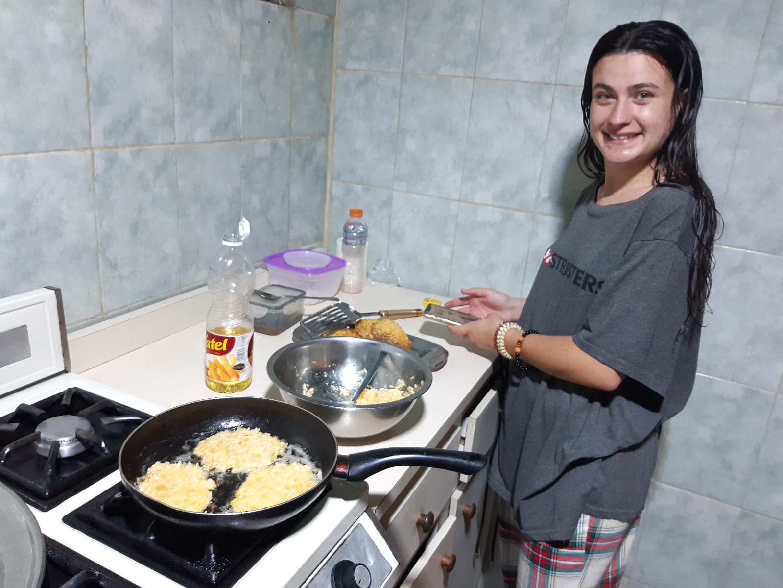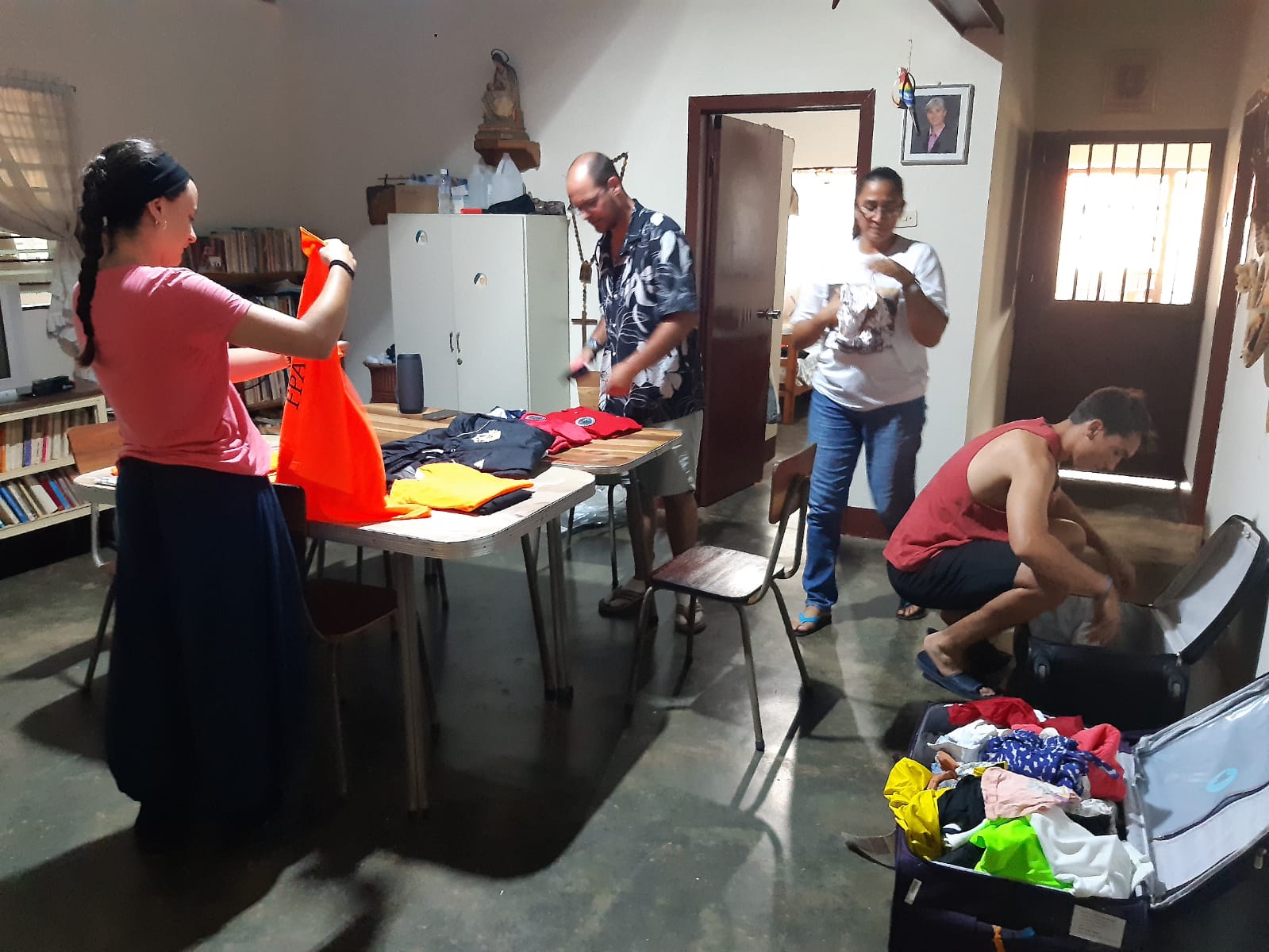 Al llegar a casa, seguimos con tareas. Esta vez, organizar toda la ropa que hemos traído de donaciones para los proyectos, para así poder distribuirla entre los niños. Y a preparar la cena, aprovechando los restos del arroz de la comida para hacer tortitas de arroz.
