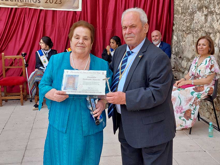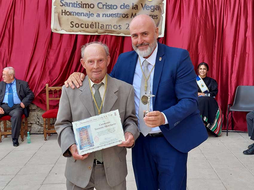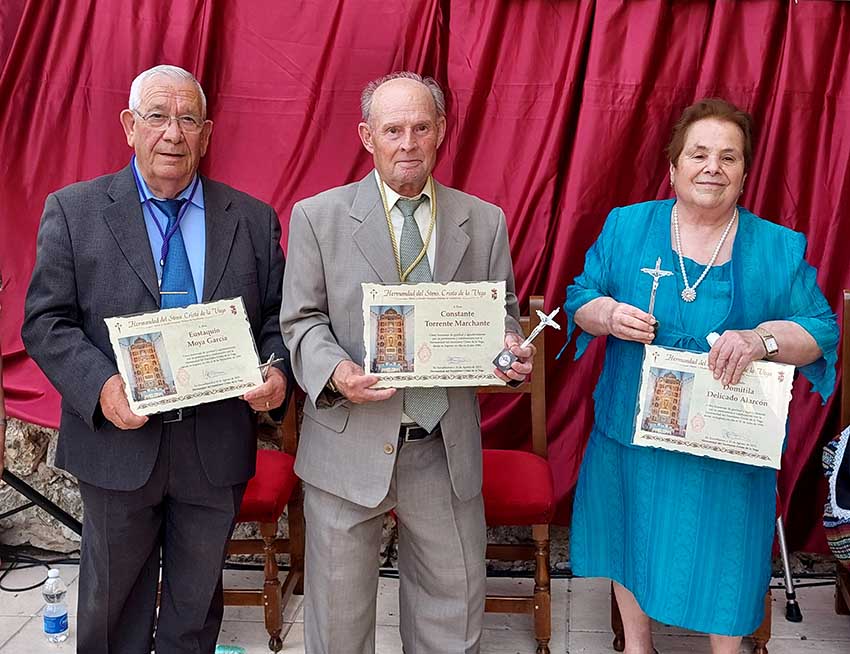 Finalizada la función religiosa en honor del Cristo de la Vega ha comenzado un emotivo acto con tres devotos del patrón de Socuéllamos. La Hermandad del Santísimo Cristo de la Vega cada año homenajea a tres hermanos que destacan por sus años de amor al Crucificado. Este año quienes han recibido un pergamino agradeciendo su devoción han sido: Domitila Delicado Alarcón, Constante Torrente Marchante y Eustaquio Moya García.
