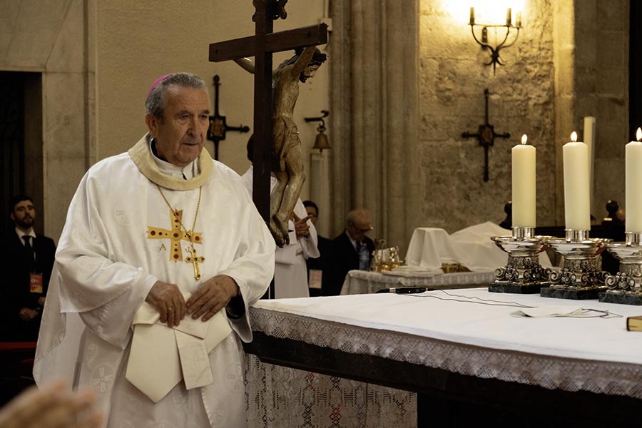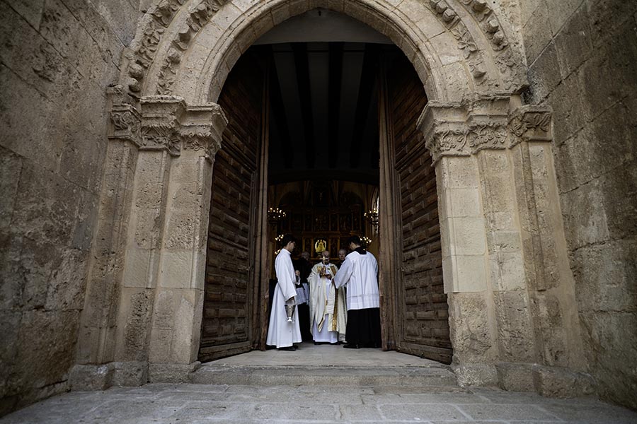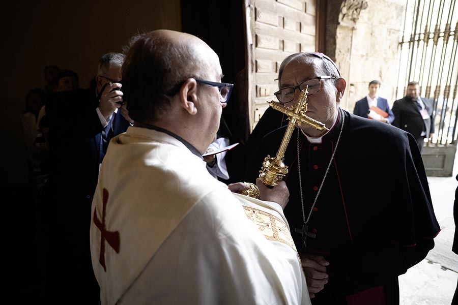 La celebración ha comenzado con la recepción del nuevo obispo en la catedral. Acompañado del arzobispo de Toledo, metropolitano de la Provincia Eclesiástica de Toledo, Mons. Francisco Cerro Chaves, y del administrador apostólico de Ciudad Real, Mons. Gerardo Melgar Viciosa, el obispo electo, Mons. Abilio Martínez Varea, ha sido recibido por el Colegio de Consultores y el Cabildo Catedral en la Puerta del Perdón del templo. Allí, el presidente del cabildo, Bernardo Torres, le ha ofrecido a venerar el lignum crucis, una reliquia de la cruz de Jesucristo, que Mons. Martínez ha besado; y el acetre, con el que el obispo electo se ha asperjado a sí mismo y a la comunidad reunida. Después, los sacerdotes y obispos se han dirigido a la capilla del Sagrario de la catedral, donde han rezado unos momentos.