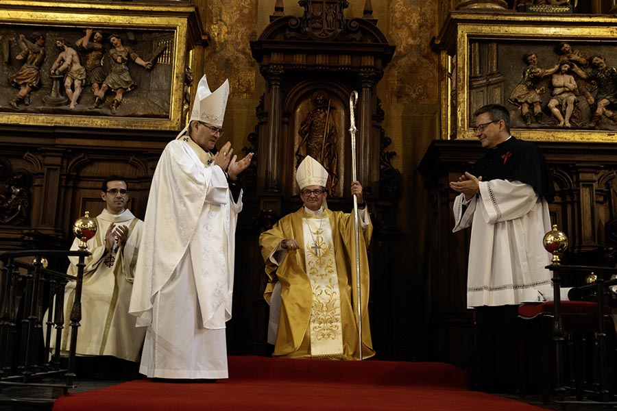 «Él cuida de sus ovejas, Dios las protege, y cuando una se pierde, va en su búsqueda con ternura, sin descanso. Vengo a esta querida diócesis con el corazón dispuesto a la comunión y a la misión. Como obispo, quiero trabajar para fomentar la corresponsabilidad entre todos los bautizados que formamos esta Iglesia diocesana. El papa Francisco lo hemos escuchado muchas veces, pero lo explica muy bien cuando habla de las cercanías que debe tener un obispo. Y dice, primero: la cercanía a Dios, que se manifiesta en la oración, en la Liturgia de las Horas, en la celebración de la Eucaristía. El trabajo no puede ser nunca excusa para no rezar. La cercanía a los otros obispos: aquí hay una representación con los que formamos el Colegio Episcopal, el cuerpo episcopal, comunión con los obispos. Cercanía a los sacerdotes, porque sois los colaboradores más próximos al obispo, a quienes debe acompañar como padre y hermano. Y, por supuesto, cercanía al pueblo de Dios, que el obispo está llamado a guiar y a amar con entrega».