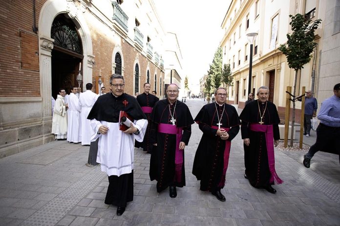 Tras el acto de recepción, ha comenzado la misa de inauguración del ministerio pastoral de don Abilio. El orden de la procesión litúrgica ha sido: acólitos del Seminario Diocesano, un diácono portando el evangeliario, presbiterio de Ciudad Real, sacerdotes invitados, Cabildo Catedral, vicarios generales, Colegio de Consultores, obispos, arzobispos, el cardenal arzobispo de Barcelona, Mons. Omella, el administrador apostólico, el obispo electo y el arzobispo metropolitano, que en ese momento portaba el báculo presidiendo la toma de posesión.