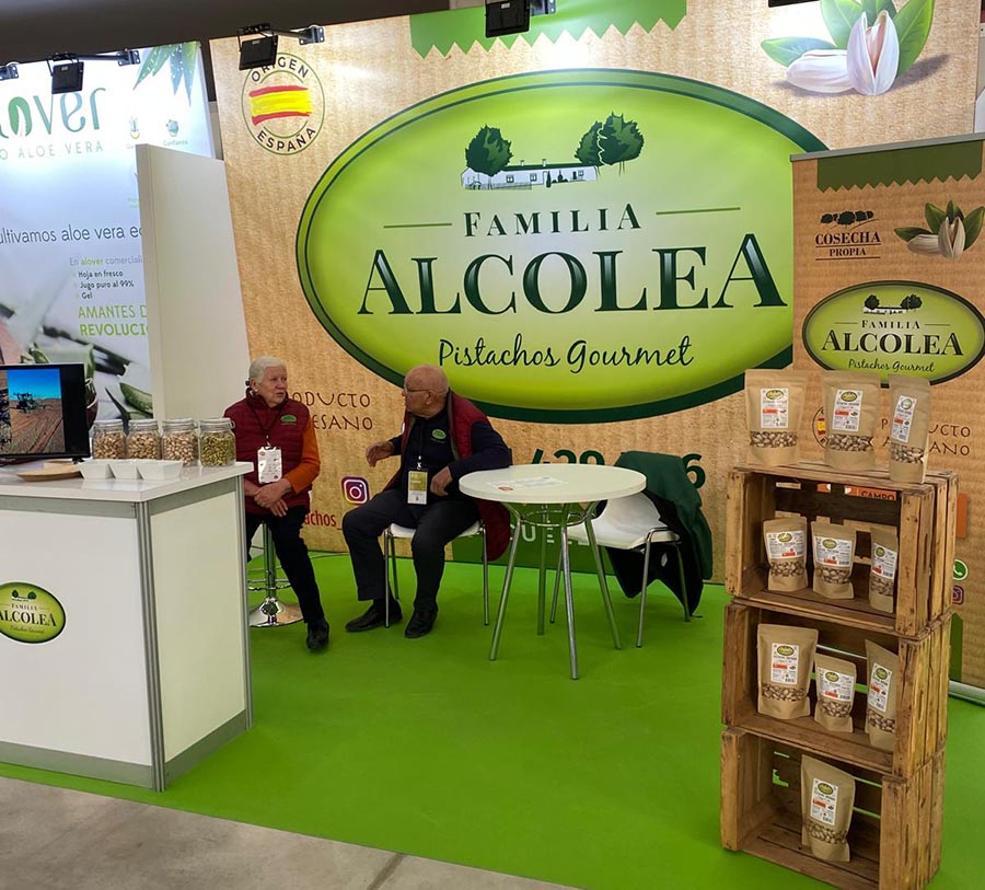Por su parte la Familia Alcolea ha expuesto sus pistachos de producción propia en todos los distintos formatos que oferta: pelados, con cáscara e incluso garrapiñados, un producto de alta gama en el mundo de los frutos secos. El pistacho ha sido durante estos dos días uno de los grandes protagonistas en una región como es la castellano-manchega que se prepara para el boom de este producto habiendo triplicado la capacidad de procesado. Solo en 2023 se procesaron en España más de 7.500 toneladas de pistacho seco, el 74,3% en Castilla-La Mancha.