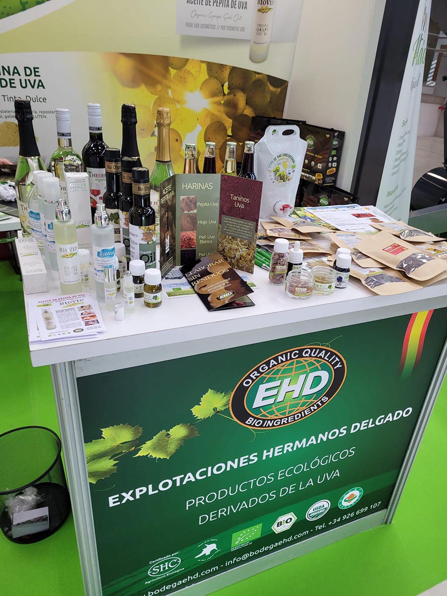 EHD ha llevado sus productos ecológicos, sobre todo ingredientes nutracéuticos que se utilizan en el mundo de la alimentación, la cosmética, la industria farmacéutica e incluso como alimentación animal. Los hermanos Delgado han llevado hasta sus últimas consecuencias el total aprovechamiento de los productos y subproductos derivados de sus plantaciones de viñedo ecológico. Siendo una empresa emblemática y ofreciendo productos tan singulares como la hoja de vid ecológica, el aceite de pepita de uva y la harina de ollejo de uva.
