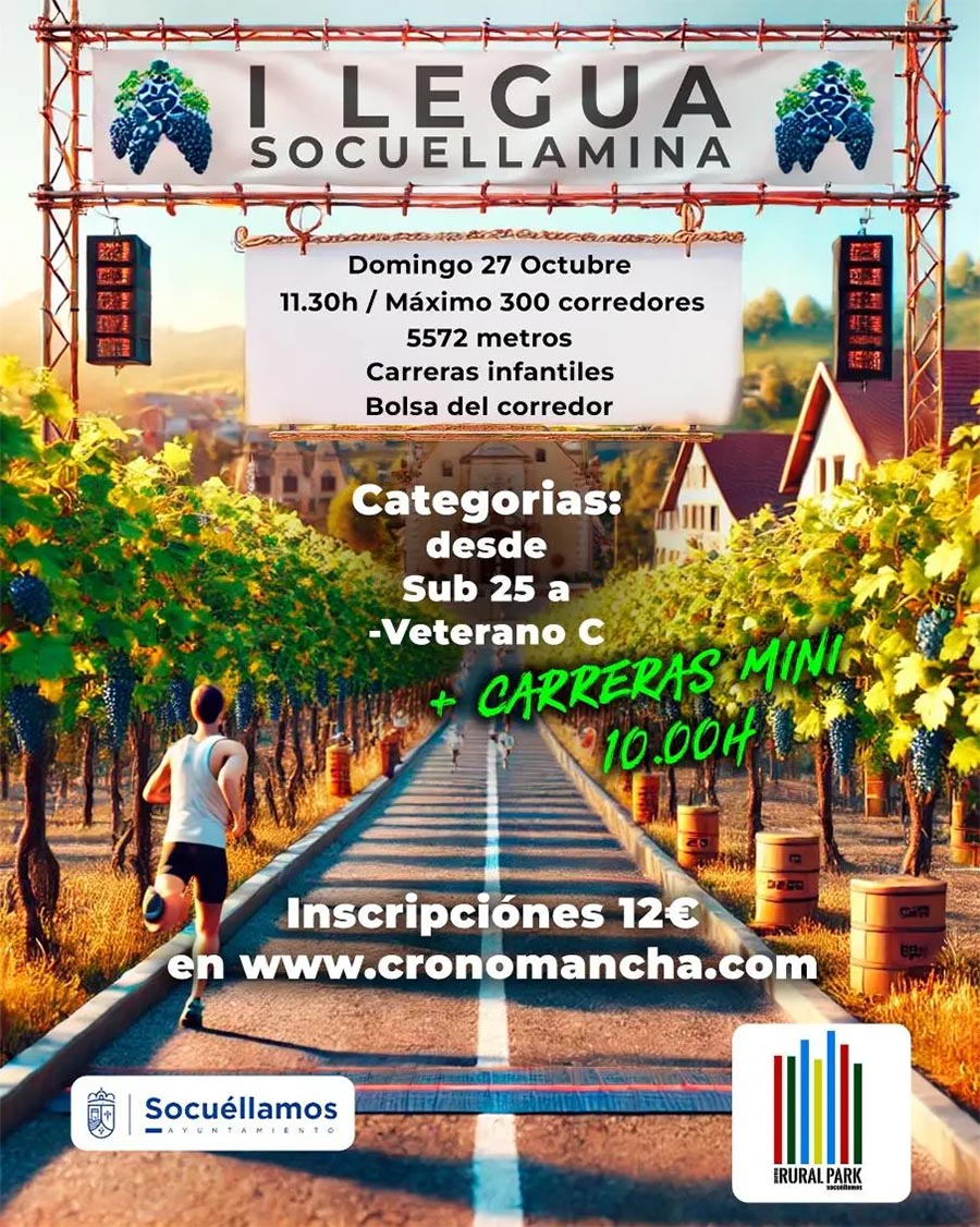 RURAL PARK organiza la primera edición de la Legua Socuellamina, una carrera con una distancia de 5572 metros (una legua). La carrera tendrá lugar el domingo 27 de octubre.