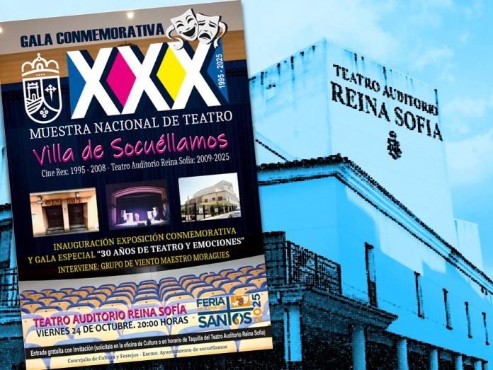 Desde la Concejalía de Educación, Cultura y Festejos del Ayuntamiento de Socuéllamos se informa de la celebración de la Gala Conmemorativa de la XXX Muestra Nacional de Teatro “Villa de Socuéllamos”, que tendrá lugar el viernes 24 de octubre a las 20:00 horas en el Teatro Auditorio Reina Sofía.