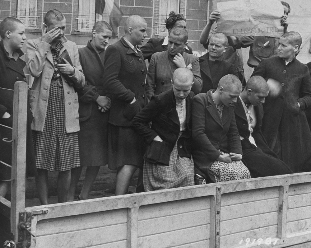Se ha documentado que al menos a 20.000 mujeres francesas se les afeitó la cabeza como forma de castigo y humillación pública. La práctica de afeitar la cabeza como castigo no se limitó a Francia; se extendió a otros países ocupados por Alemania durante la Segunda Guerra Mundial, incluidos Bélgica, Italia y, en menor medida, los Países Bajos.