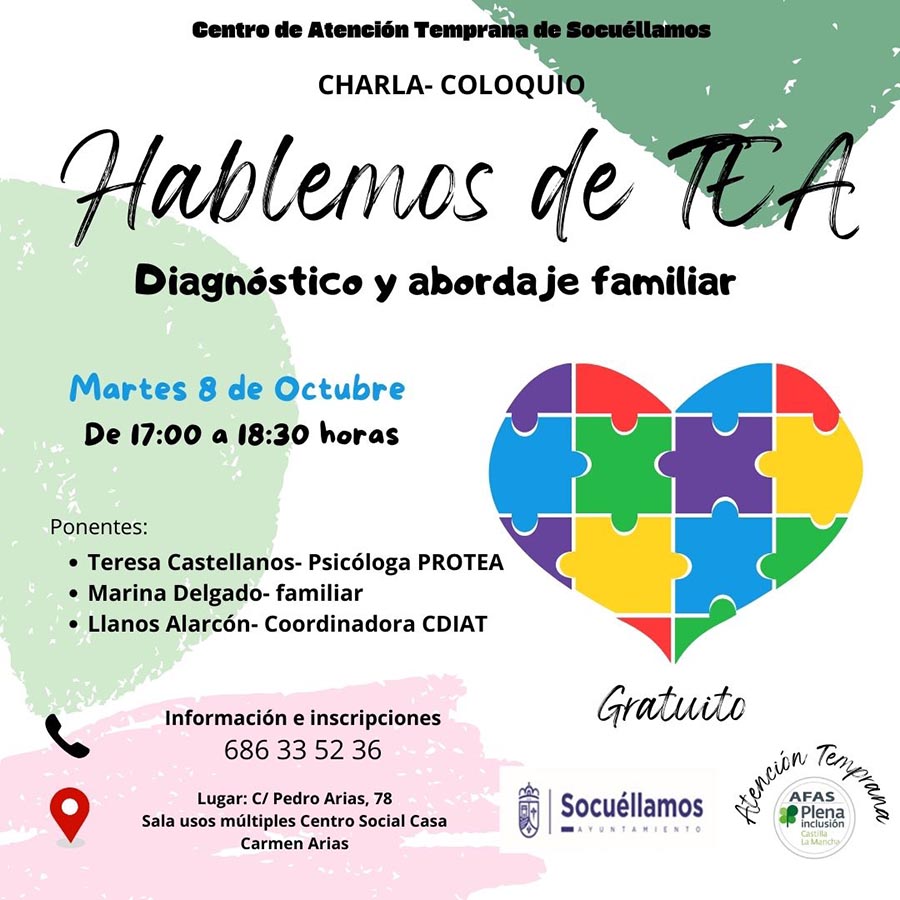 El Centro de Atención Temprana de Socuéllamos, gestionado por AFAS en colaboración con el Ayuntamiento de Socuéllamos organiza la charla-coloquio: 'HABLEMOS DEL TEA' Diagnóstico y abordaje familiar