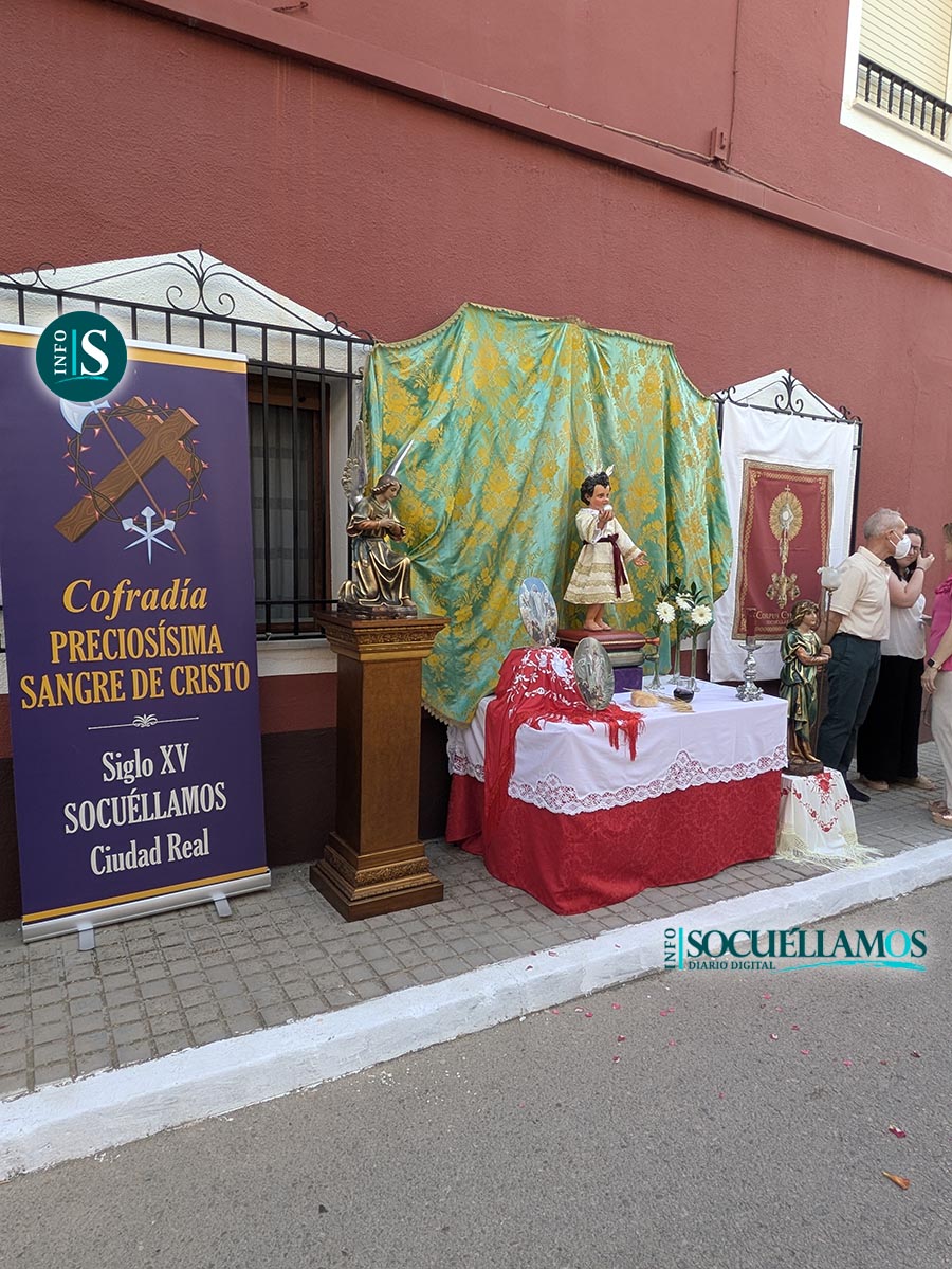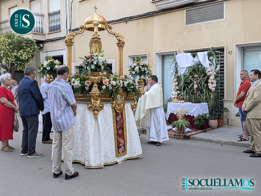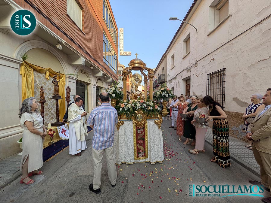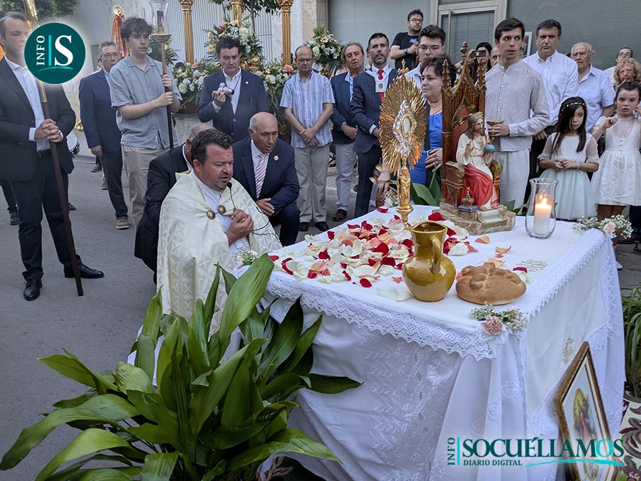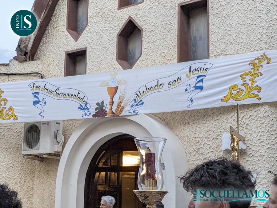 Al inicio de la procesión han caído unas gotas y se ha levantado un poco el viento pero pronto ha cesado permitiendo el desarrollo del evento con normalidad. Como es tradición, los devotos de Socuéllamos montan altares al paso de la procesión, en los que el Santísimo se detiene haciendo el sacerdote una bendición y una oración, así hasta llegar al punto final que es la Parroquia de San José en la que se hace una Adoración que sirve como cierre.