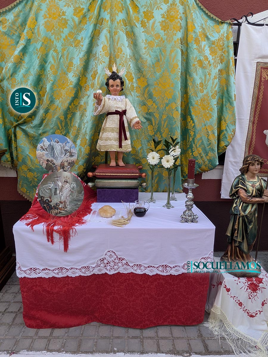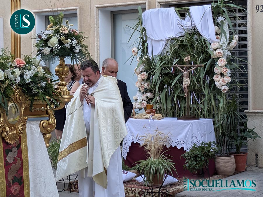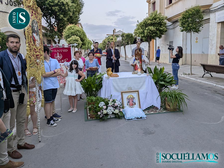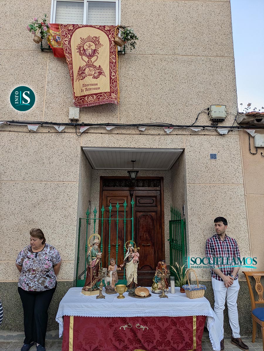 Al inicio de la procesión han caído unas gotas y se ha levantado un poco el viento pero pronto ha cesado permitiendo el desarrollo del evento con normalidad. Como es tradición, los devotos de Socuéllamos montan altares al paso de la procesión, en los que el Santísimo se detiene haciendo el sacerdote una bendición y una oración, así hasta llegar al punto final que es la Parroquia de San José en la que se hace una Adoración que sirve como cierre.