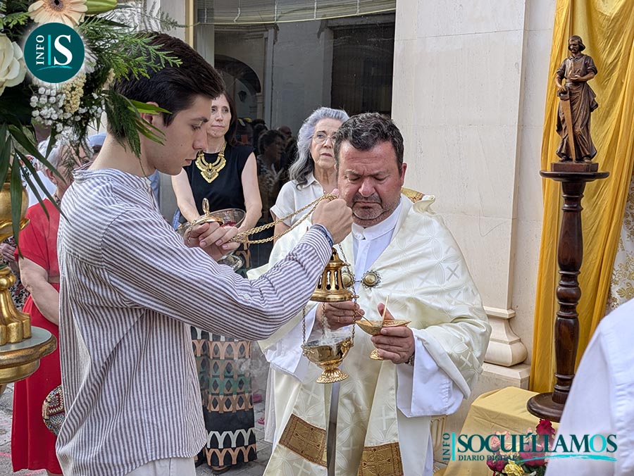 Tal y como ha explicado don Juan Pedro Andújar en la homilía de la Eucaristía que se ha celebrado antes de la procesión, el Corpus Christi está relacionado con el evangelio que se lee hoy, el del milagro de los panes y los peces y que nos llama a los cristianos a participar repartiendo ese pan que es el cuerpo de Cristo y a poner nosotros lo poco que tenemos al servicio de los demás que ya se encargará Dios de multiplicar.