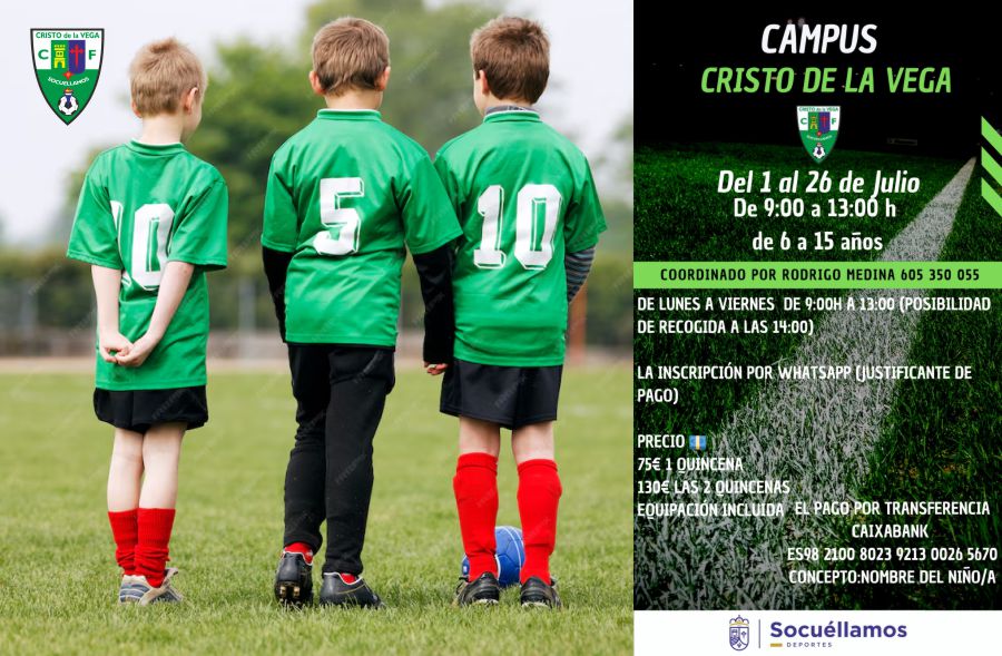 El Cristo dde la Vega C.F. organiza durante el mes de julio, concretamente del 1 al 26, un Campus en el que los niños, además de jugar al fútbol, estarán aprendiendo valores como el compañerismo, la actitud, la disciplina, etc.