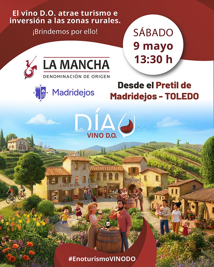 Este año serán 30 las denominaciones de origen, de 13 comunidades autónomas, las que se sumen a esta celebración, organizando diferentes actividades en lugares emblemáticos y en ubicaciones atractivas de sus territorios, con un carácter lúdico y festivo. En el caso concreto de la Denominación de Origen La Mancha, fiel a su carácter itinerante e integrador en los municipios y provincias que lo componen, ha escogido la localidad de Madridejos, en La Mancha toledana, donde realizará diferentes actividades como una galería del vino, a mediodía en el Pretil del municipio, para culminar con el brindis final, a las 13:30 horas.