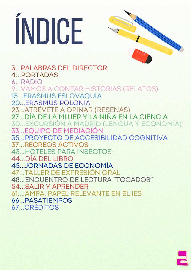 Después de meses de trabajo, la revista del IES Fernando de Mena ya es una realidad. Bajo la tutela de nuestra profesora de Lengua Castellana y Literatura, Belén Moreno, Paola Castellanos y Ángela Zarco, alumnas de primer curso de Bachillerato y de tercer curso de ESO, respectivamente, se han convertido en las editoras de este primer número de la revista que sale, hoy, a la luz, para disfrute de toda la comunidad educativa del IES Fernando de Mena.