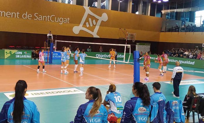 El conjunto grancanario mostró su carácter en el segundo set, asumiendo el control del juego, logrando una ventaja de cinco puntos en el ecuador de la manga, igualando finalmente el marcador en Sant Cugat.