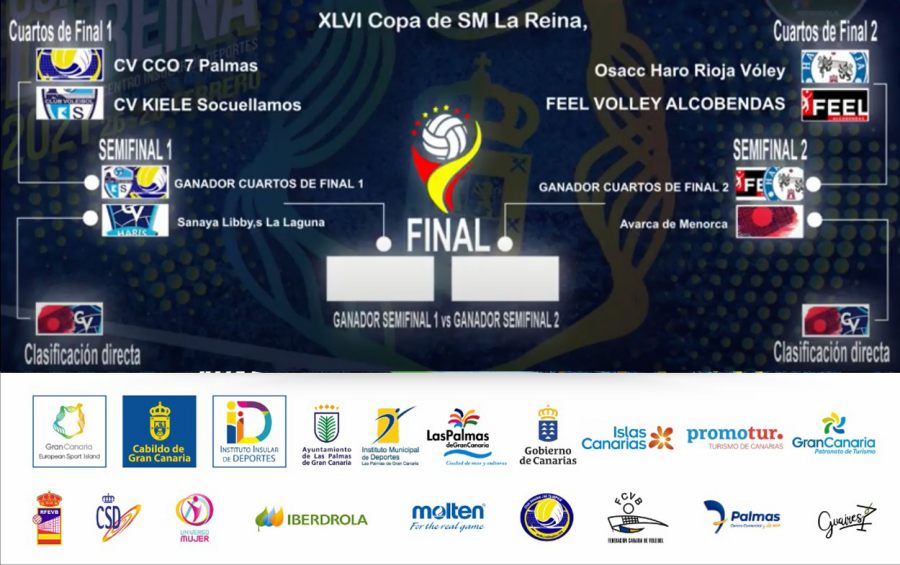 El Centro Insular de Deportes de Gran Canaria será la sede de la 46 edición de la Copa de la Reina de voleibol del 26 al 28 de febrero, que reunirá a los seis primeros clasificados al término de la primera vuelta de lIga Iberdrola.