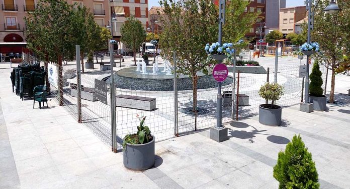 Estos días las vallas se han acercado lo máximo posible a la fuente y jardín para recuperar el mayor terreno posible de disfrute a la Plaza de la Constitución, aunque hasta el mes de agosto no se prevé la retirada de las mismas.
