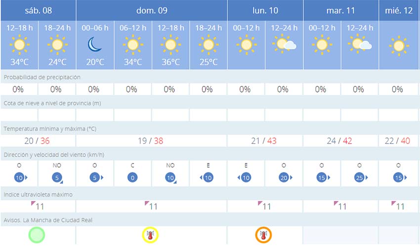 La Aemet para La Mancha tiene activado el Riesgo por Temperaturas Máximas para mañana domingo y para el lunes.