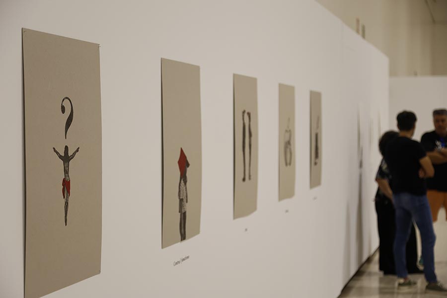 En este espacio se exhibieron ilustraciones inspiradas en “Meursault”, el personaje principal de la célebre novela “El extranjero” de Albert Camus. A través del arte, se da forma a un personaje anodino y absurdo, que concibe el tiempo como un elemento cíclico y carente de sentido. Para el artista, la figura de “Meursault” refleja los patrones que los sistemas de poder y los medios de comunicación de masas utilizan para modelar tanto a las sociedades como al individuo contemporáneo.