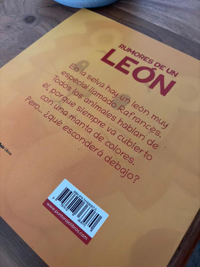 En cuanto al contenido del libro, Rumores de un león presenta una historia ambientada en la selva, donde vive un león muy especial llamado Rafrancés. Todos los animales hablan de él, porque siempre va cubierto con una manta de colores. Pero... ¿qué esconderá debajo? Este planteamiento invita a los lectores a adentrarse en una narración cargada de misterio y valores.