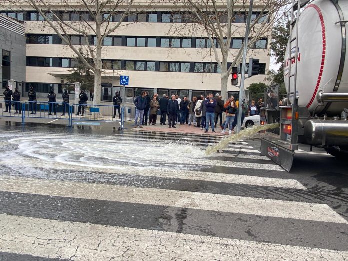 La tractorada ha pasado por la puerta de la Confederación Hidrográfica del Guadiana, donde se ha vertido vino de forma simbólica por la complicada situación del sector vitivinícola de nuestra región. Llegados a la altura de la calle Alarcos, donde estaba previsto que accedieran algunos tractores al centro de la capital, “ante la intransigencia de Subdelegación del Gobierno y Policía Nacional, se ha producido un acontecimiento tenso no deseado”. Finalmente, únicamente han podido entrar los manifestantes a pie y los convocantes han intervenido a las puertas de la Subdelegación del Gobierno, donde han apelado a la unidad de todos los agricultores y ganaderos para defender las reivindicaciones del sector.